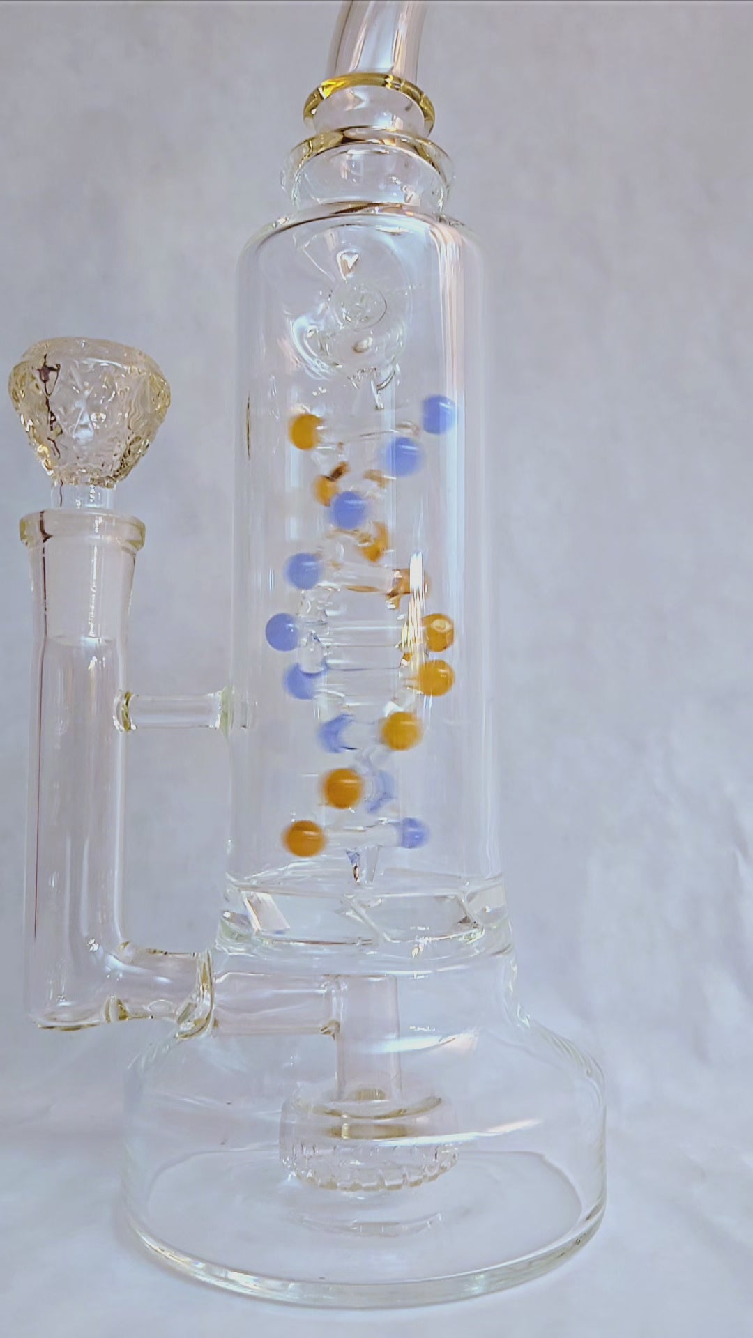 Science meets sesh with the DNA Spinning Perc Rig. This 11-inch marvel features a spinning water perc and bent neck for maximum comfort. Pink, functional, and scientifically blown—this rig is perfect for the sophisticated smoker who loves watching art in motion.